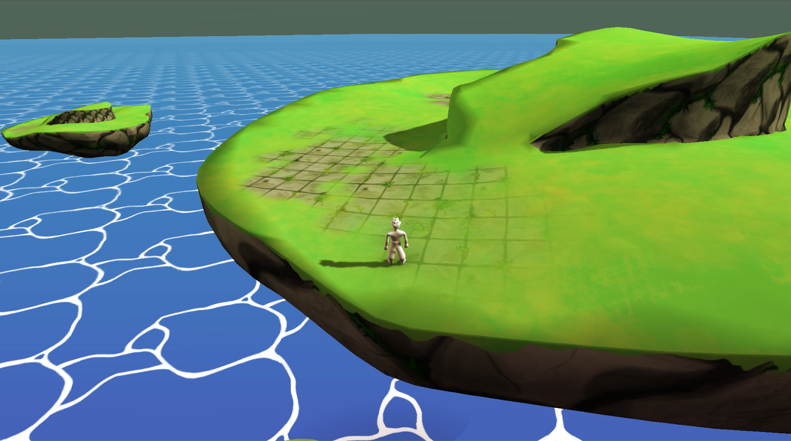 The idea was to test different ways of mixing textures (tiling and blending). Unity can only handle 2 different sets of UV textures which might be annoying for environment design… 🙁